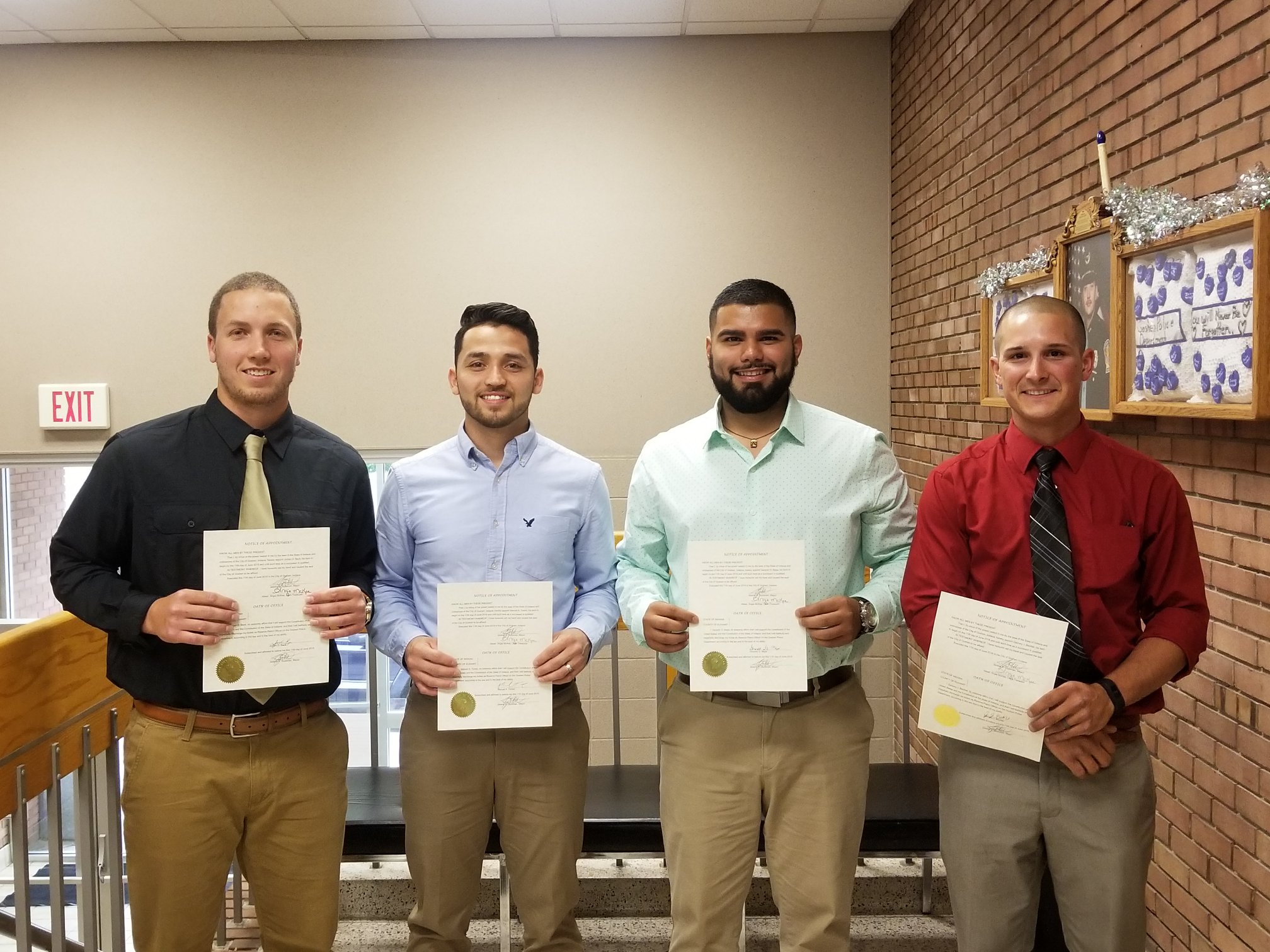 Patrol Officer Ronnie Yoder was promoted to the rank of Detective. Probationary Patrol Officers Andrew Keim, Drew Wilson and Austin Evarage were promoted to Patrol Officers. And Jorden Beck, Gerardo Mejia, Manuel Torres, and Zachary Bechtel were hired as Goshen Police Reserve Patrol Officers.
