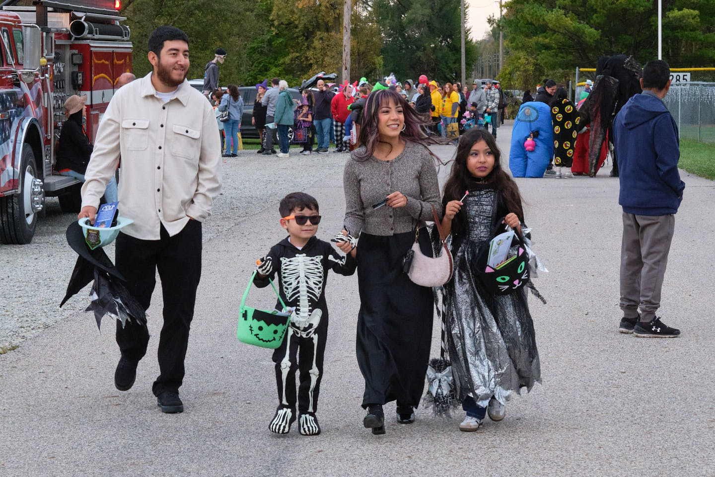 GOSHEN, Ind. — Cars lined the loop at Shanklin Park, their trunks transformed into haunted cabins, carnival booths, and candy stops. Kids dressed as dinosaurs, deranged clowns, and superheroes compared candy hauls while volunteers passed out treats as an October chill finally began haunting the autumn air.