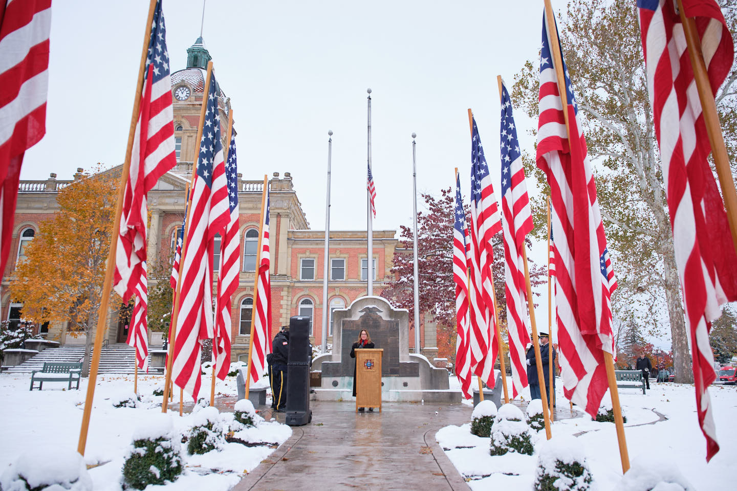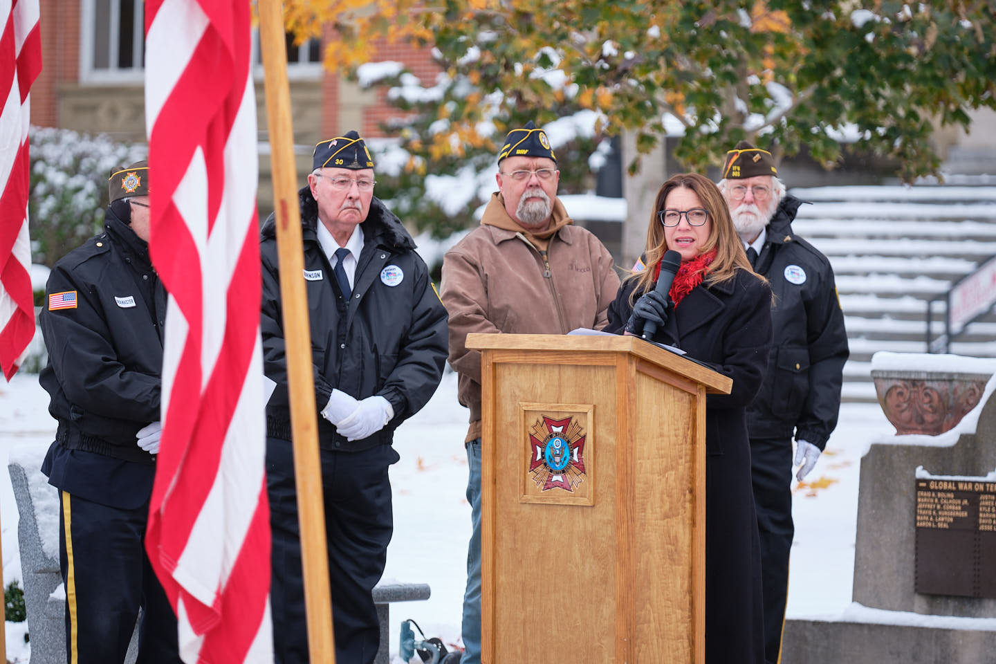 Leichty said veterans are not distant figures from history. “They are our neighbors, our colleagues, family members and friends,” she said. She thanked them for mentoring youth, volunteering, and bringing the same discipline that defined their service into civic life.
