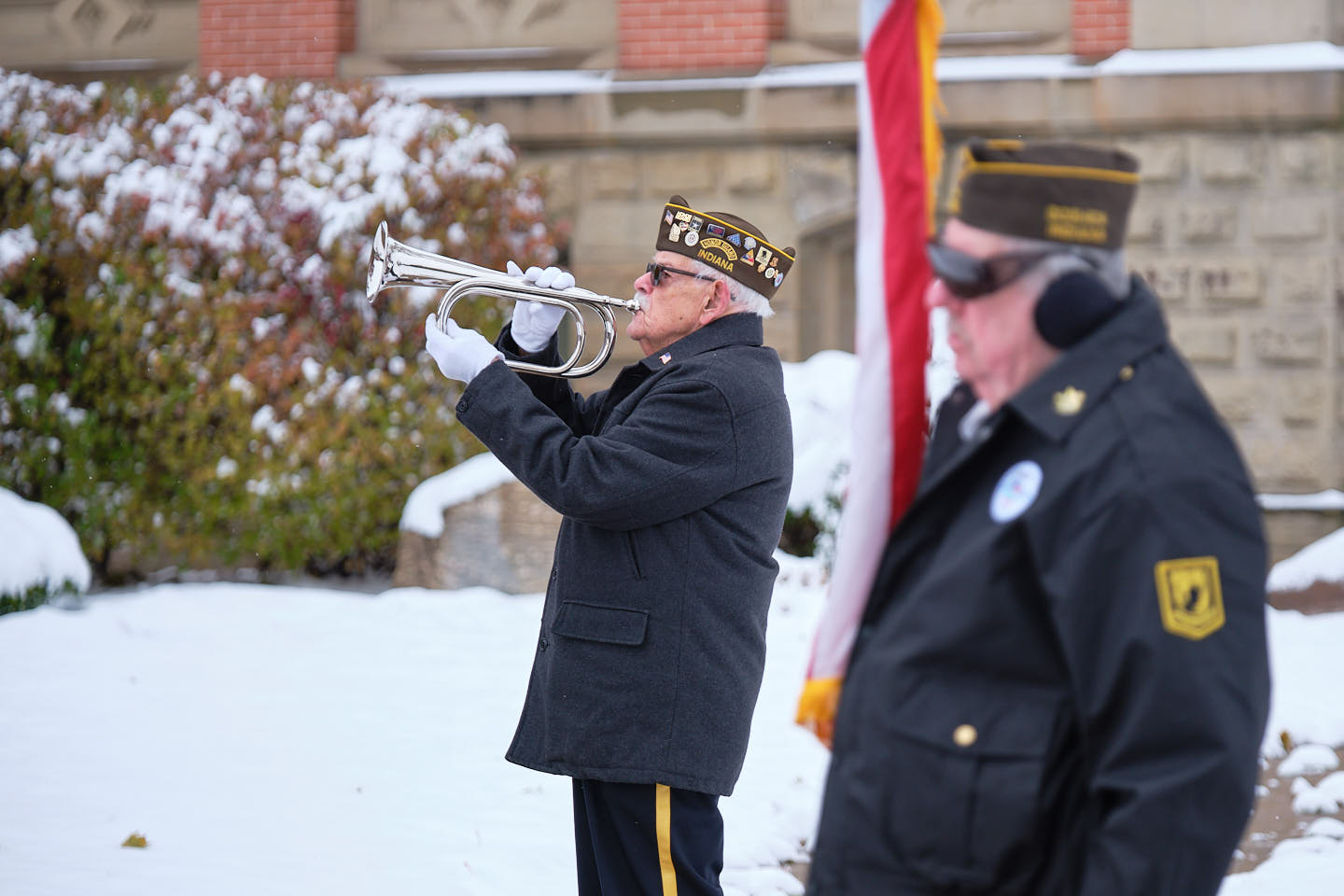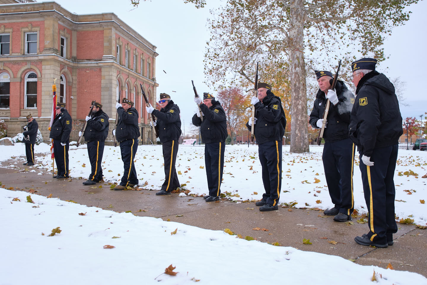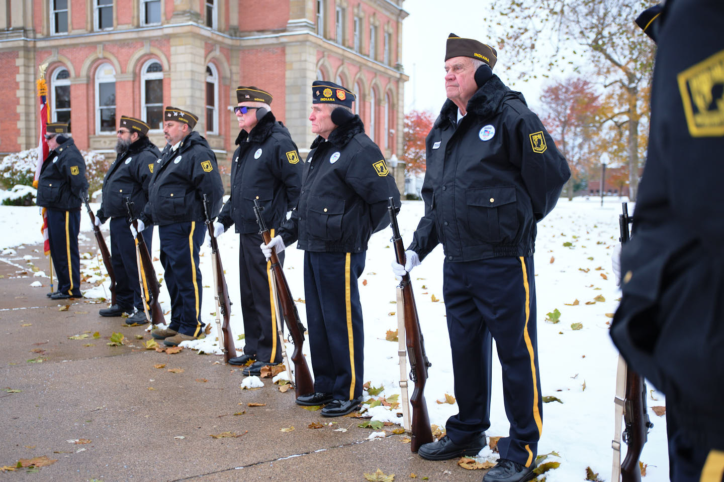 GOSHEN, Ind. — The Veterans Day ceremony in Goshen brought together veterans, families, and community leaders Monday morning at the Historic Elkhart County Courthouse in downtown Goshen. They gathered to honor those who served in defense of the nation.